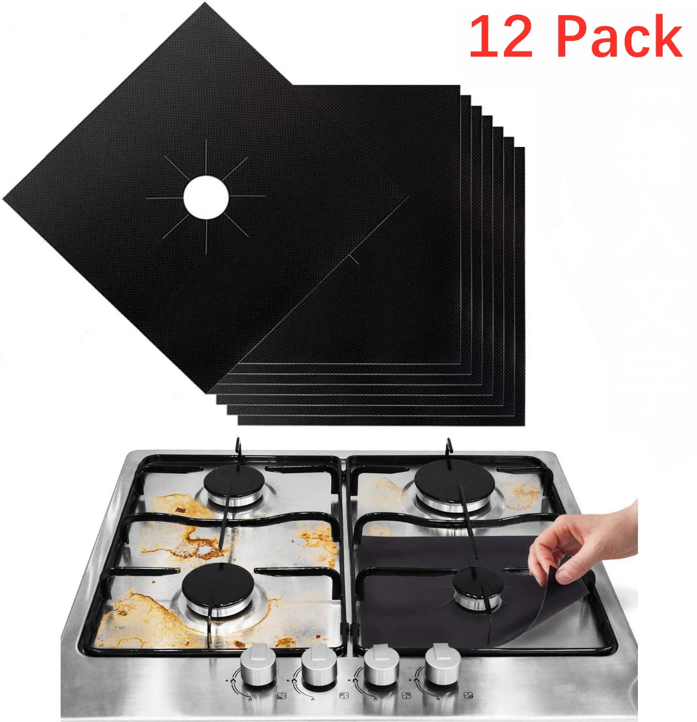 12 Pack Stove Burner Covers 0 2 Mm Double Thickness Gas Stove Burner Liners Non Stick Reusable Gas Range Protector Stove Top Burner Covers For Kitchen Cuttable Size 10 6 X 10 6 Walmart Com