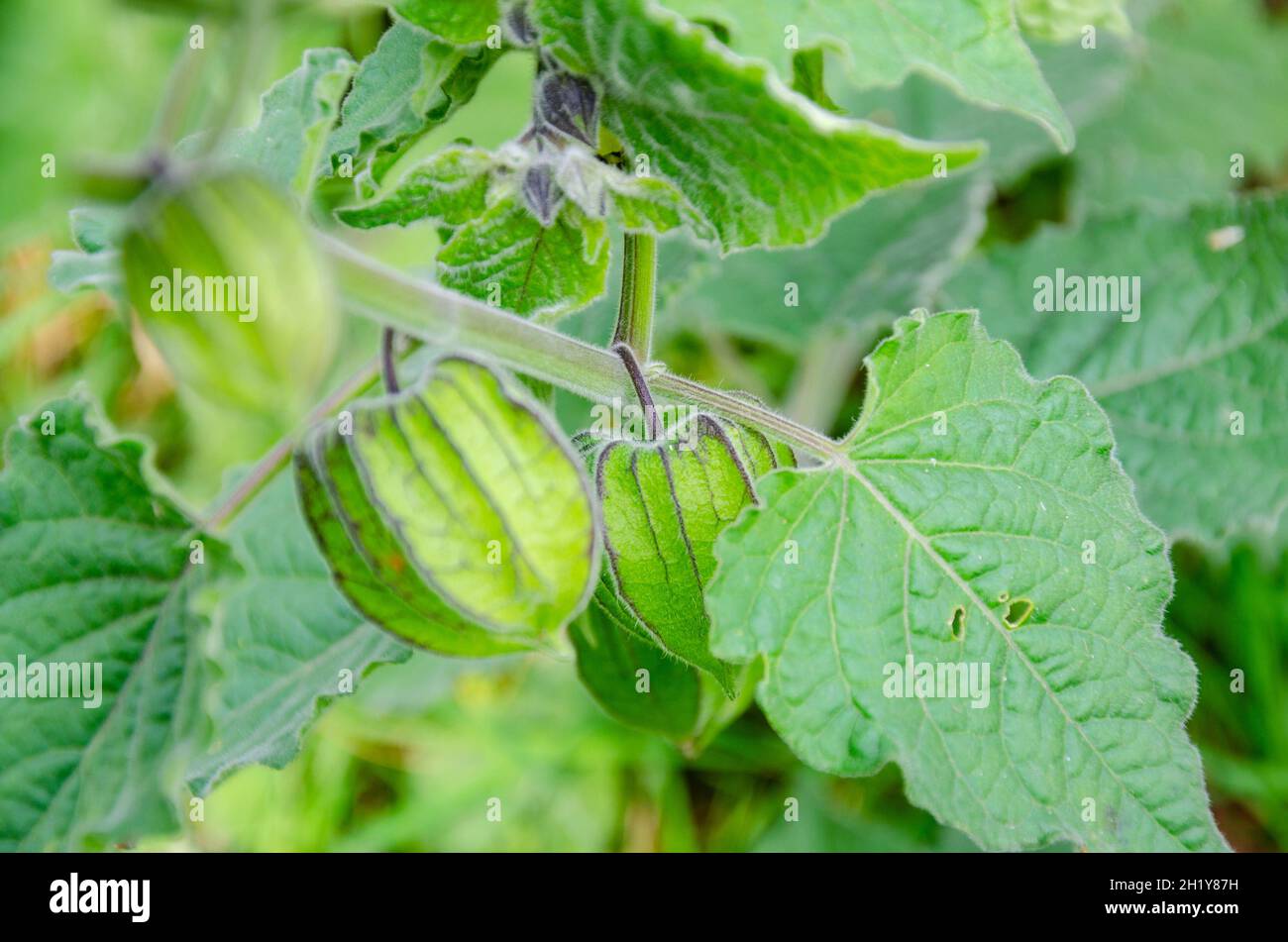 Cape Gooseberry Plants Bearing Fruit Pods Growing In A Garden Stock Photo Alamy